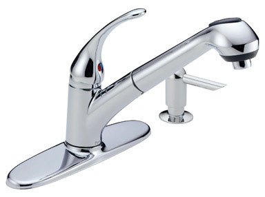 Kohler K-15160-7 Coralais Single-Control Pullout Spray Kitchen Sink Faucet with Color-Matched Sprayhead and Lever Handle, BlackOffering convenience, quality and style, this Coralais single-control pullout spray kitchen sink faucet brings sleek design continuity to the kitchen. A single-control handle and color-matched sprayhead complete the look.Kohler K-15160-7 Coralais Single-Control Pullout Spray Kitchen Sink Faucet with Color-Matched Sprayhead and Lever Handle, Black Features: One-piece ceramic valve resists debris and hard water buildup High-temperature limit stop allows you to preset a comfortable maximum temperature to eliminate scalding Temperature memory enables water to be turned on/off at any temperature setting MasterClean™ sprayface resists hard water buildup and is easy to clean Touch control stream-to-spray adjustment offers choice of spray for efficient operation Metal construction 9" (22.9 cm) spout reach with rotating spout 2.2 gallon (8.3 L) per minute maximum "?ow rate ADA Compliant Kohler lifetime limited warranty